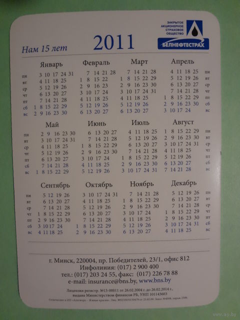 Календарик 2011 г. Белнефтестрах. Дома все устроено, как Вам нравится.