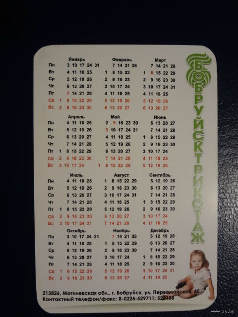 Календарик 2011 г. Бобруйсктрикотаж. (2).