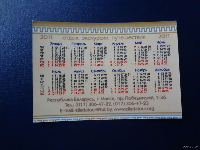 Календарик 2011 г. Элладатур. Тур. агентство.