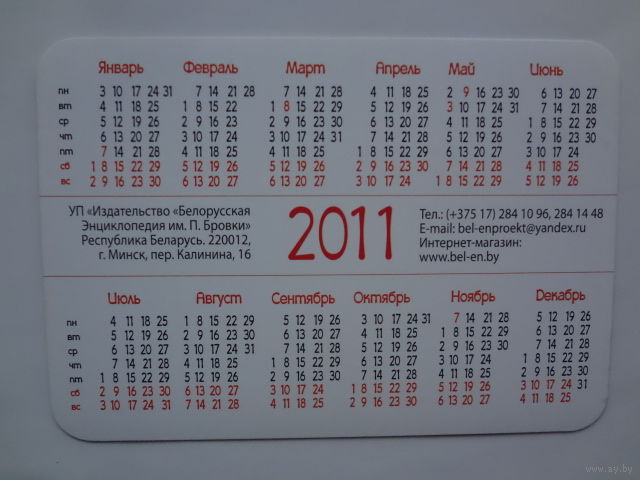 Календарик 2011 г. Энциклопедия для школьников и студентов.