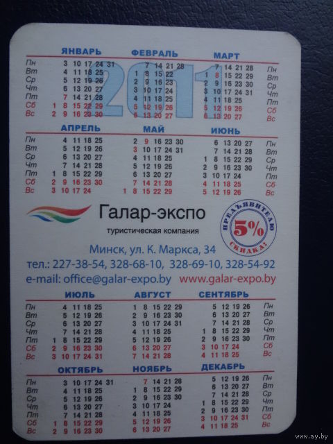 Календарик 2011 г. Галар-экспо. Отдых, экскурсии.
