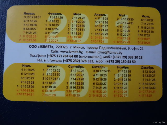 Календарик 2011 г. IZMET. Надежная мебель из металла.