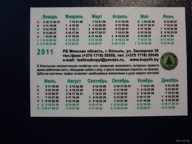 Календарик 2011 г. Копыльский лесхоз. Организация охоты на лося, кабана, косулю.