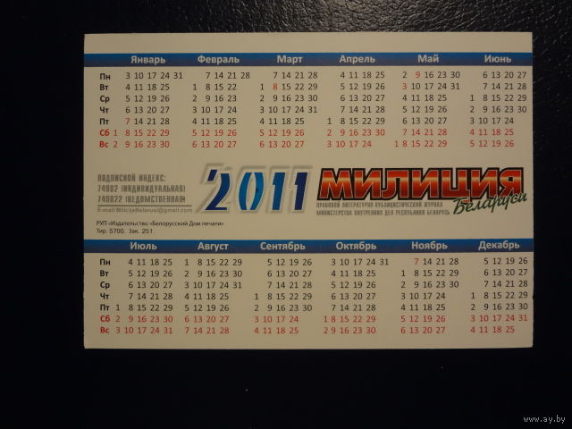 Календарик 2011 г. Милиция Беларуси. Журнал. Самбо.