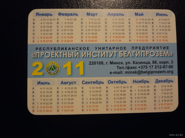 Календарик 2011 г. Проектный институт Белгипрозем. 50 лет.