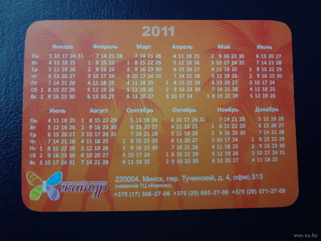 Календарик 2011 г. Роскошный отдых по доступным ценам! Жекатур.