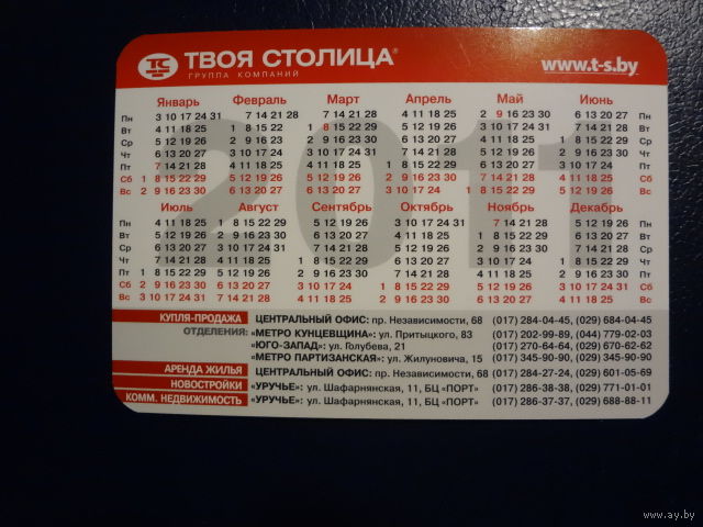 Календарик 2011 г. Твоя столица. 15 лет нас знают - нам доверяют.