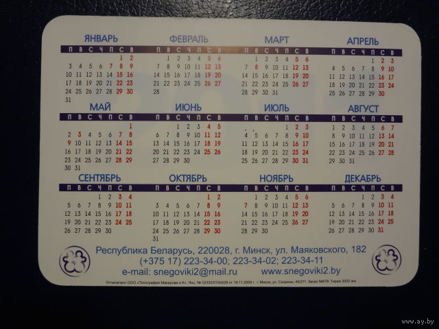 Календарик 2011 г. УП Минский хладокомбинат. Нам 60 лет.