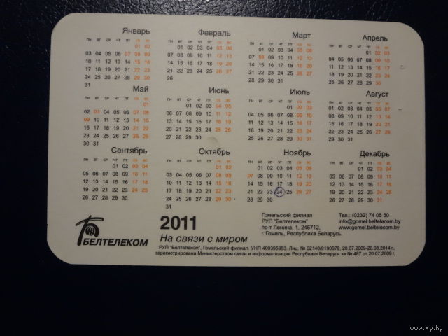 Календарик 2011 г. ZALA. Управляй своим телевидением.