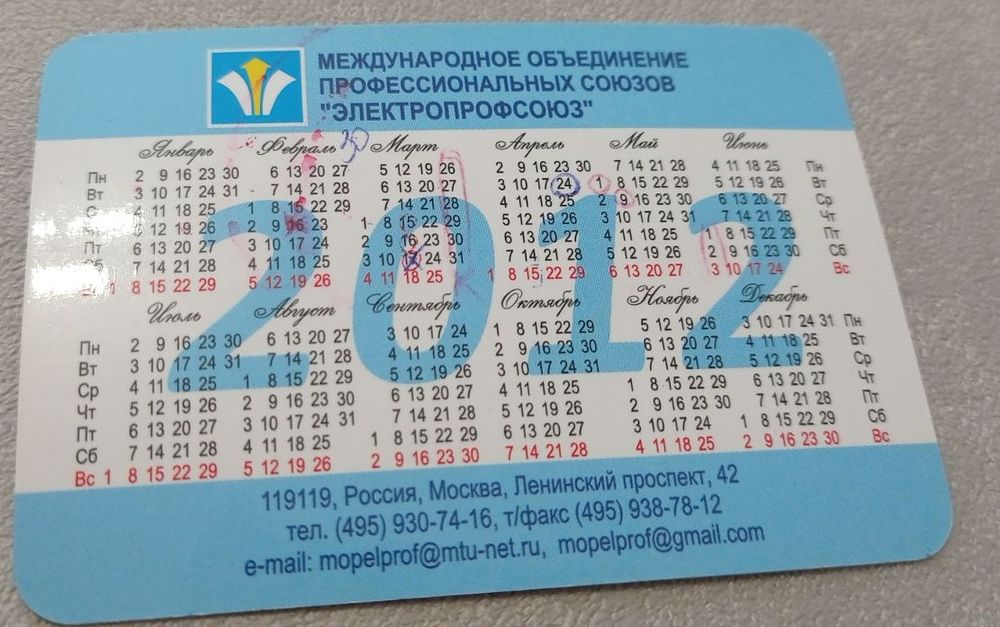 Календарик. 2012. Электропрофсоюз. Передача в Витебске возле ратуши. Пересылка в другой город за счёт покупателя по тарифам Белпочты либо Европочты после 100% предоплаты.