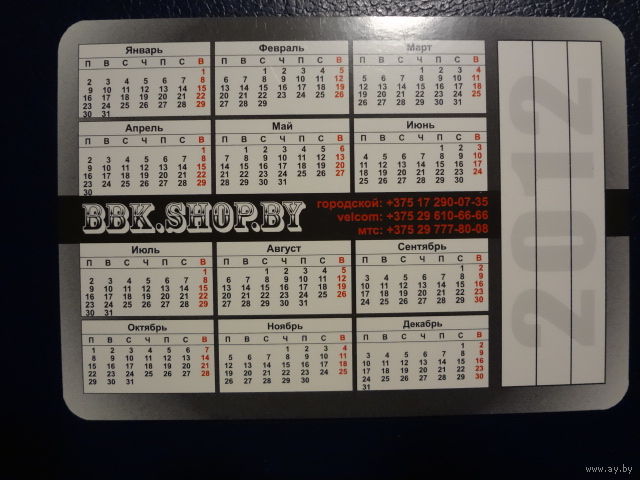 Календарик 2012 г. BBK.SHOP.BY.