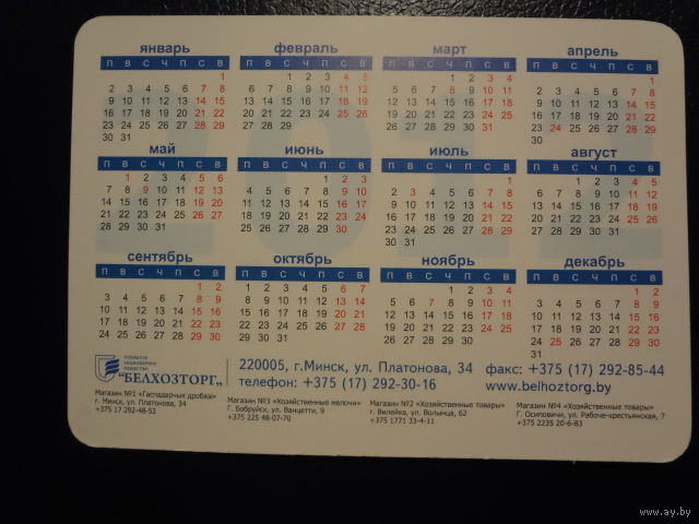 Календарик 2012 г. Белхозторг. Огромнейший выбор товаров.
