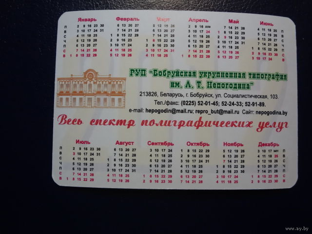 Календарик 2012 г. Бобруйская укрупненная типография. Собака.