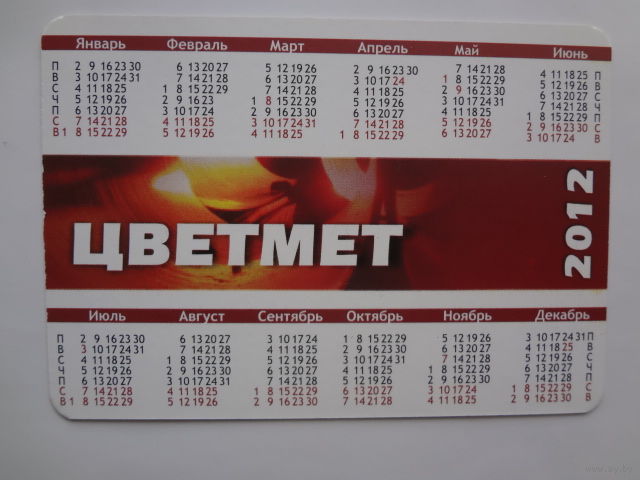 Календарик 2012 г. ЧП Цветмет (Жодино).