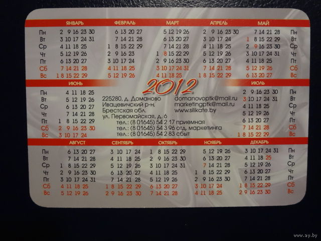 Календарик 2012 г. Домановский производственно-торговый комбинат.