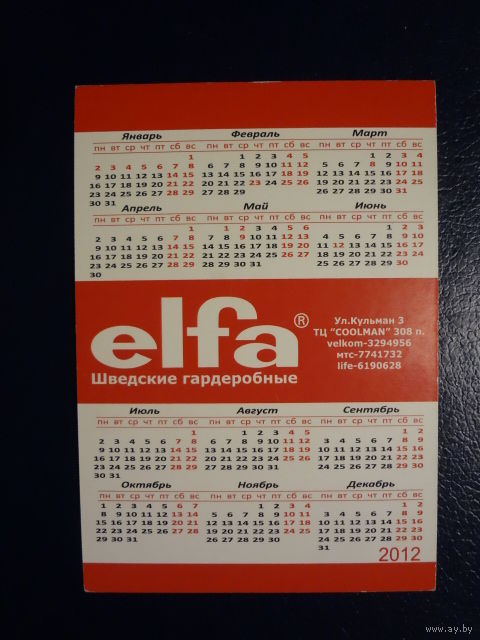 Календарик 2012 г. Elfa. Шведские гардеробные.