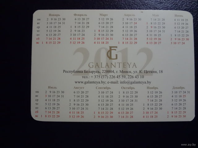 Календарик 2012 г. Galanteya. Искусство быть собой.