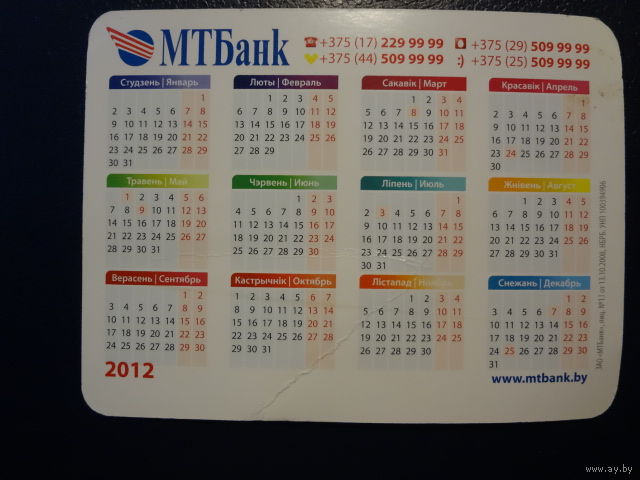 Календарик 2012 г. МТБанк. Как купить валюту выгодно, удобно, быстро?