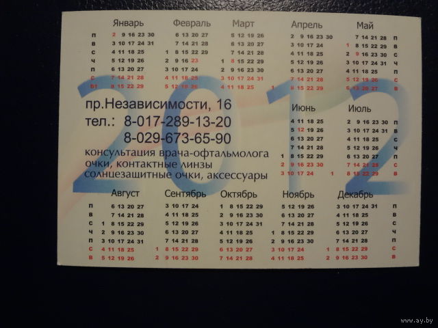 Календарик 2012 г. Оптика. С нами Вы рассмотрите все чудеса мира!