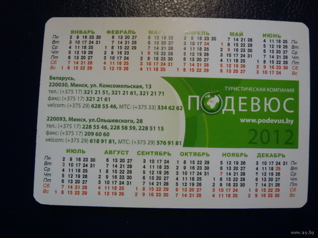 Календарик 2012 г. Подевюс. Отдых в любое время года!