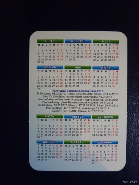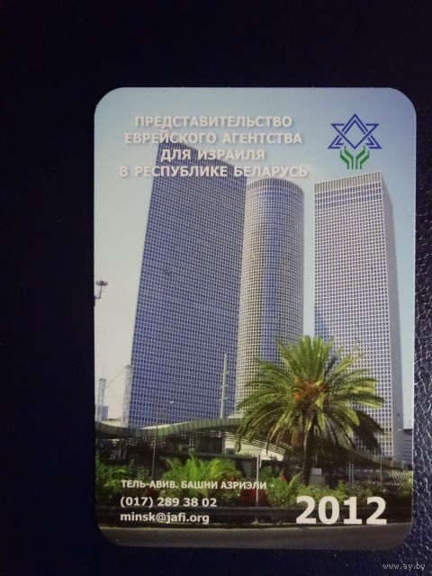Календарик 2012 г. Представительство еврейского агентства для Играиля а РБ.