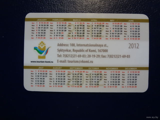 Календарик 2012 г. Республика Коми.