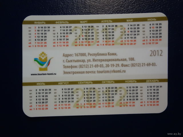 Календарик 2012 г. Республика Коми.