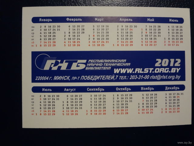Календарик 2012 г. Республиканская научно-техническая библиотека.