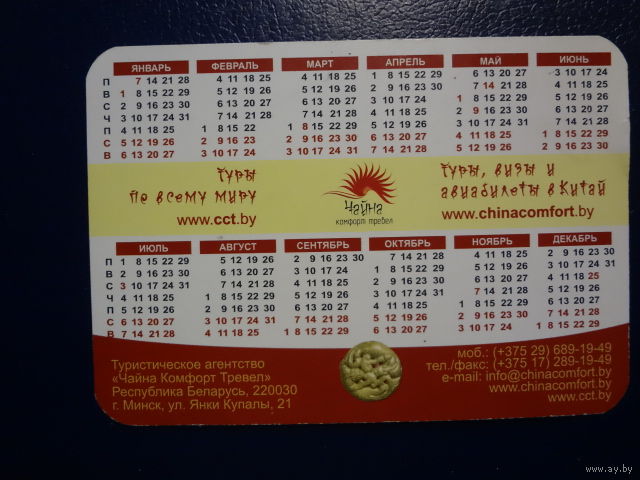 Календарик 2013 г. Чайна Комфорт Тревел. Туры а Китай.