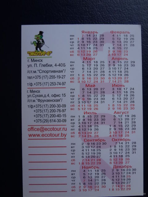 Календарик 2013 г. Экотур-6. 21 год в туризме.