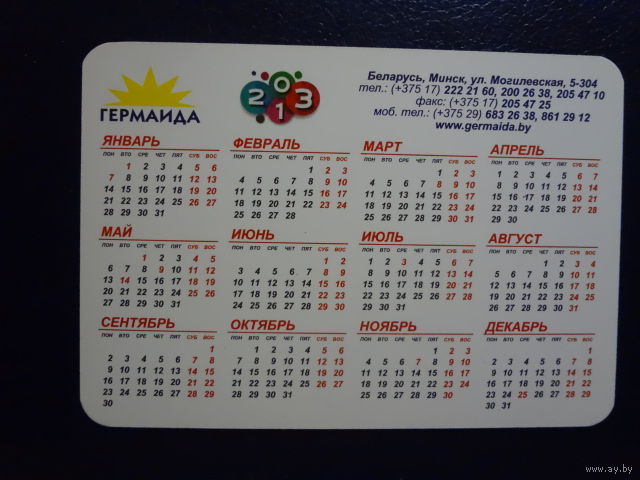 Календарик 2013 г. Гермаида. Тур. агентство.