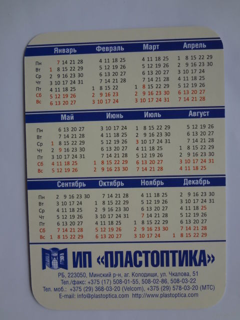 Календарик 2013 г. ИП Пластоптика. Надежность и безопасность в любых условиях.