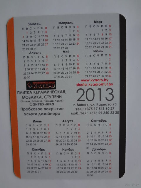 Календарик 2013 г. Квадро. Плитка керамическая, мозаика, ступени.