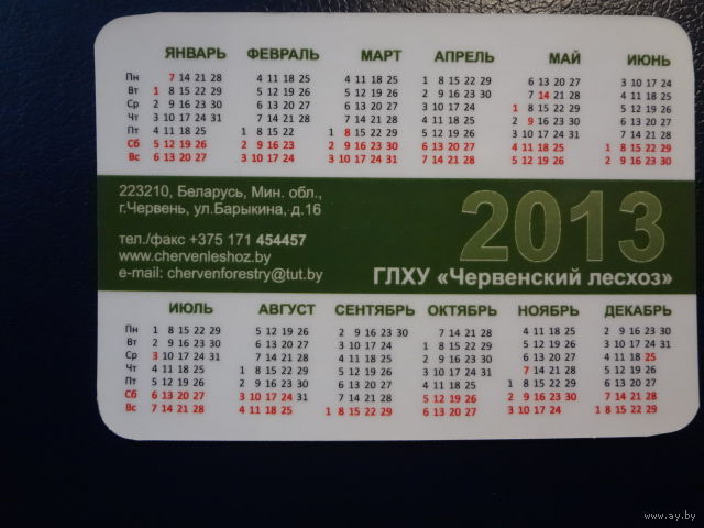 Календарик 2013 г. Лесоохотничье хозяйство. Червенский лесхоз.
