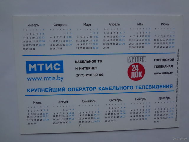 Календарик 2013 г. МТИС в каждом доме.