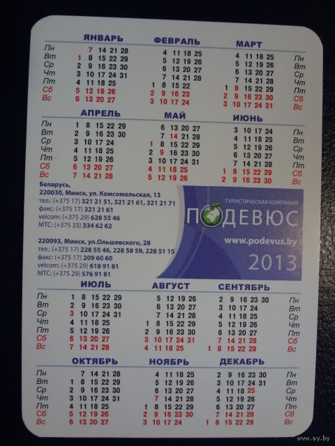 Календарик 2013 г. Подевюс. Золотая рыбка.