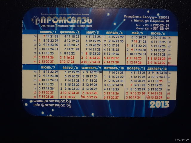 Календарик 2013 г. Промсвязь.