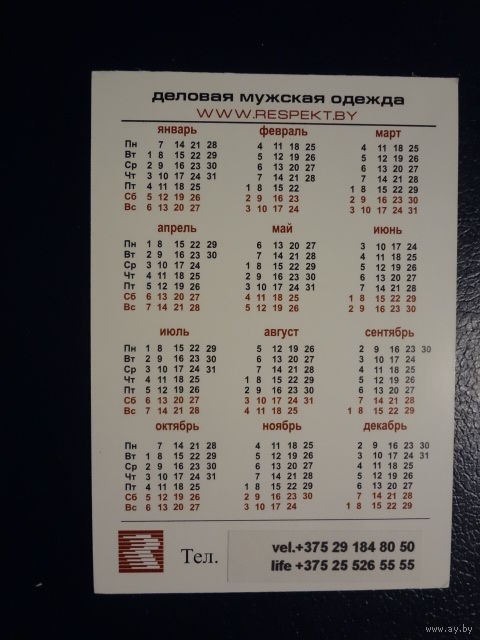 Календарик 2013 г. RESPEKT. Одежда для стильных мужчин.