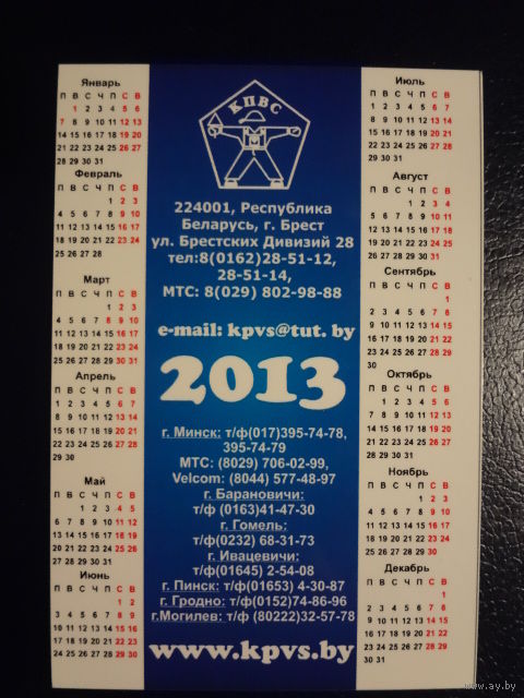 Календарик 2013 г. Спецодежда. Рабочая обувь.