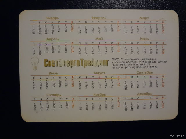 Календарик 2013 г. СветЭнергоТрейдинг.