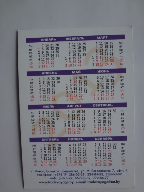 Календарик 2013 г. Туристическая компания ТрейдВояж.