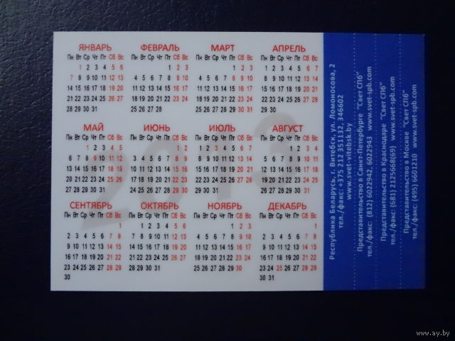 Календарик 2013 г. Витебское электротехническое предприятие Свет. Нам 15 лет.