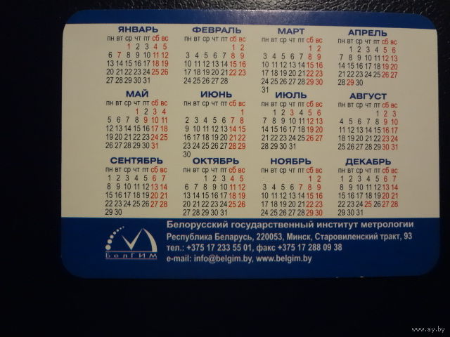 Календарик 2014 г. 90 лет образования Белорусской Палаты мер и весов.