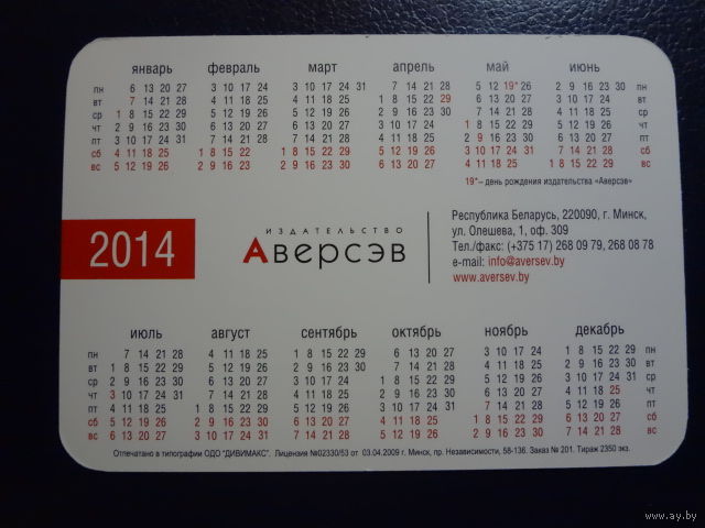 Календарик 2014 г. Аверсэв. Сохраняя прошлое, смотрим в будущее...