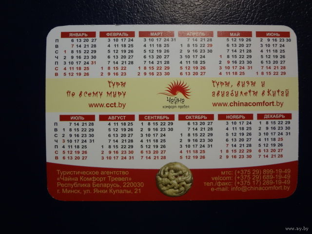 Календарик 2014 г. Чайна Комфорт Тревел. Шанхай.