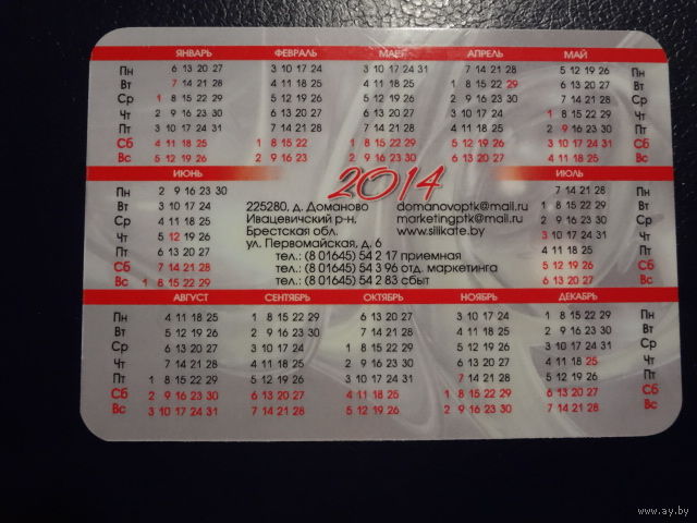 Календарик 2014 г. Домановский производственно-торговый комбинат. 70 лет.