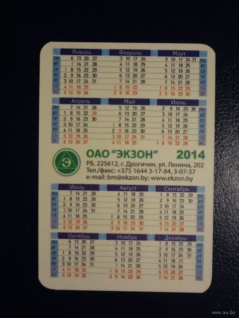 Календарик 2014 г. Экзон. Траво пассит.