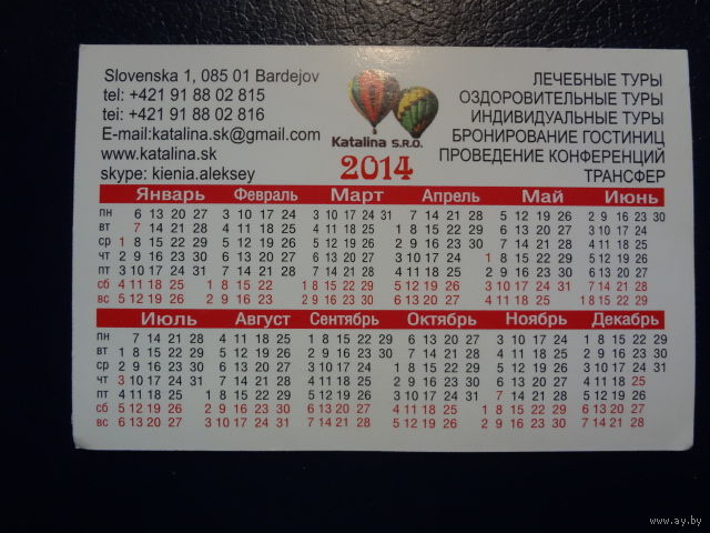 Календарик 2014 г. Лечебные туры.