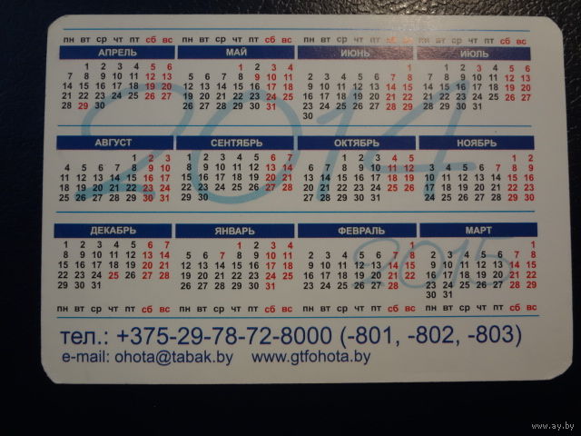 Календарик 2014 г. Охотхозяйство. ОАО Гродненская табачная фабрика Неман.