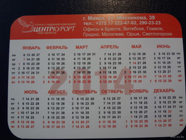 Календарик 2014 г. Отдых на море с ЦентрКурорт.